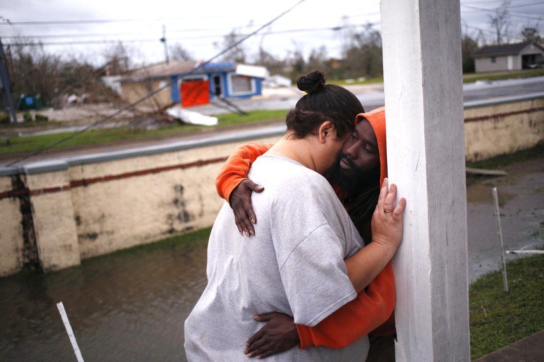 Residents embrace in front of an apartment building after Hurricane Michael hit in Panama City, Florida, U.S., on Wednesday, Oct. 10, 2018. Hurricane Michael became the strongest storm to hit the U.S. mainland since 1992, and one of the four most intense in history, with winds that reached 155 miles per hour as it made landfall in Florida.